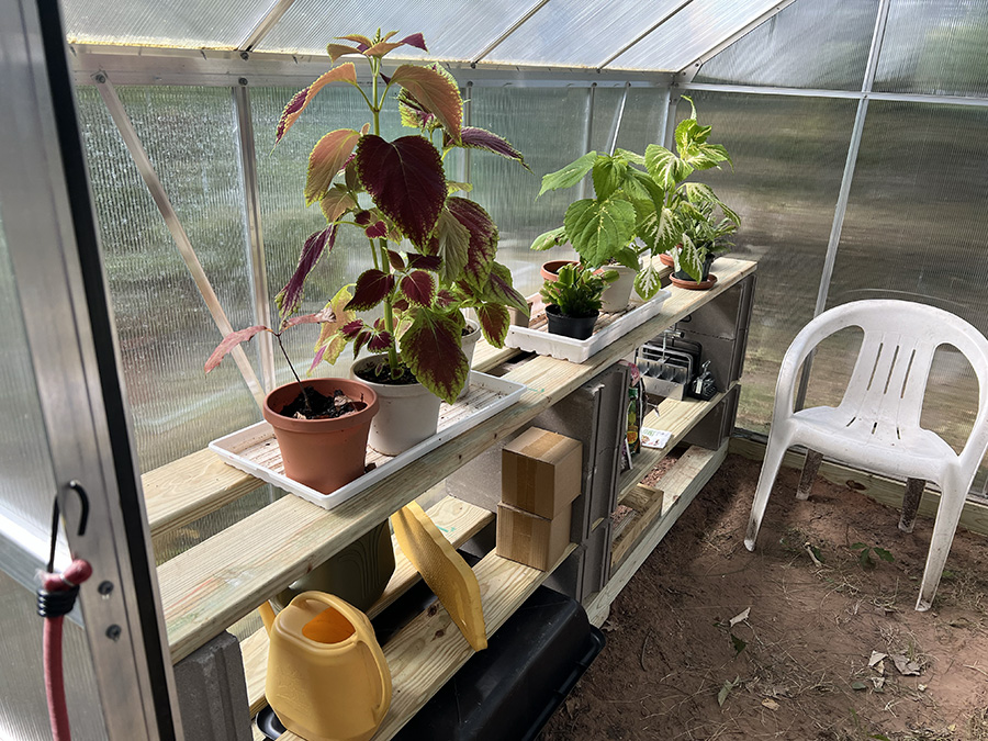 On the sunny days when I'm feeling chilled, until it starts staying cold, I can go sit out in the greenhouse and soak in the rays and the solar heat. The plants, however, have only a short time before I must bring in the plants I want to keep. Last year the first really cool overnight temp was Oct. 9. Brrr.
